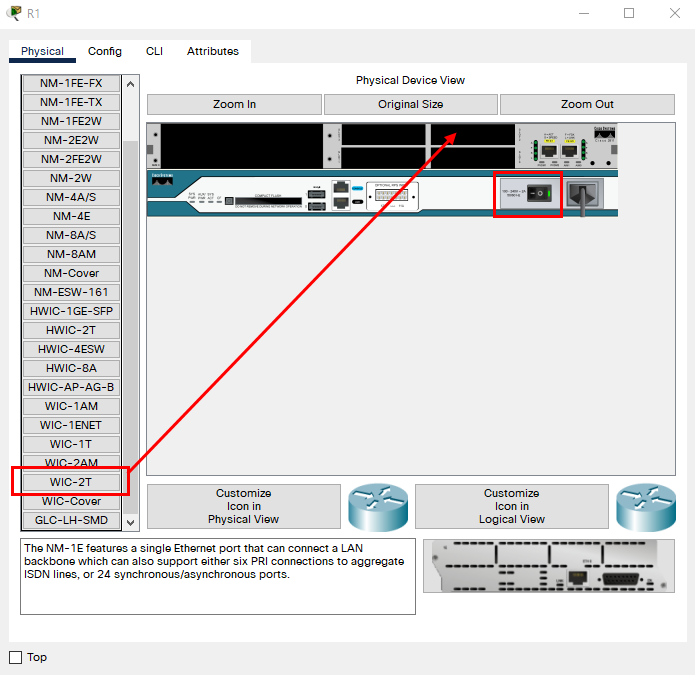 2. 전원 off -> WIC-2T 선택 및 드래그&드롭