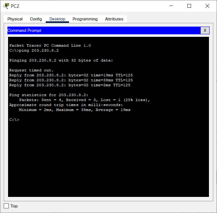 pc0에서 pc2로 핑테스트를 해보면 두 pc가 연결된것을 최종적으로 확인이 가능하다.