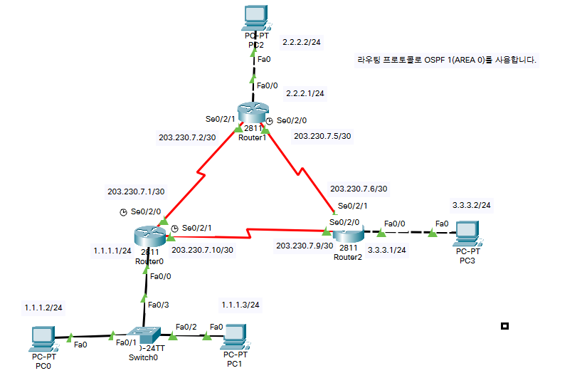 ---- do show ip route로 확인한 ospf 설정 해줘야 하는 부분 (빨간표시)