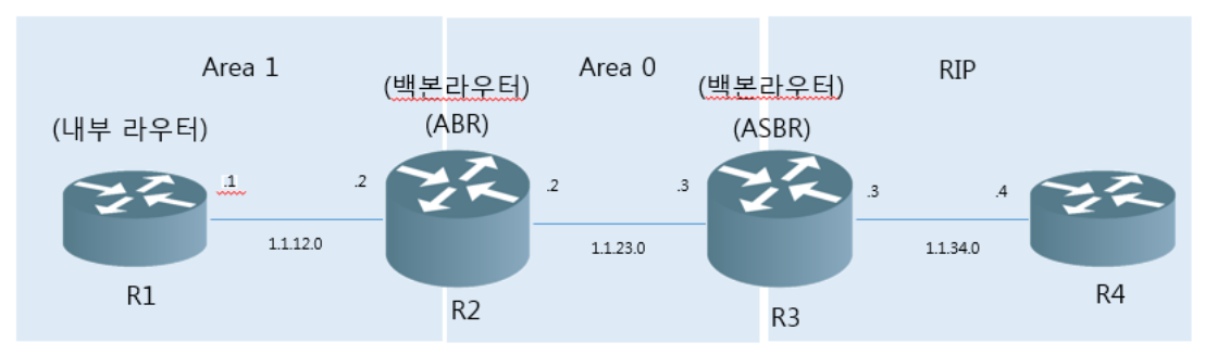 ASBR = 다른 라우팅 프로토콜을 OSPF로 재분배 시키는 라우터
