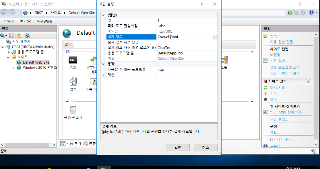 IIS (인터넷 정보서비스) 관리자를 사용한 웹사이트 설정