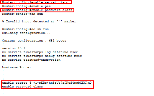 enable password class <--- sh run 명령어 입력시 비밀번호 노출