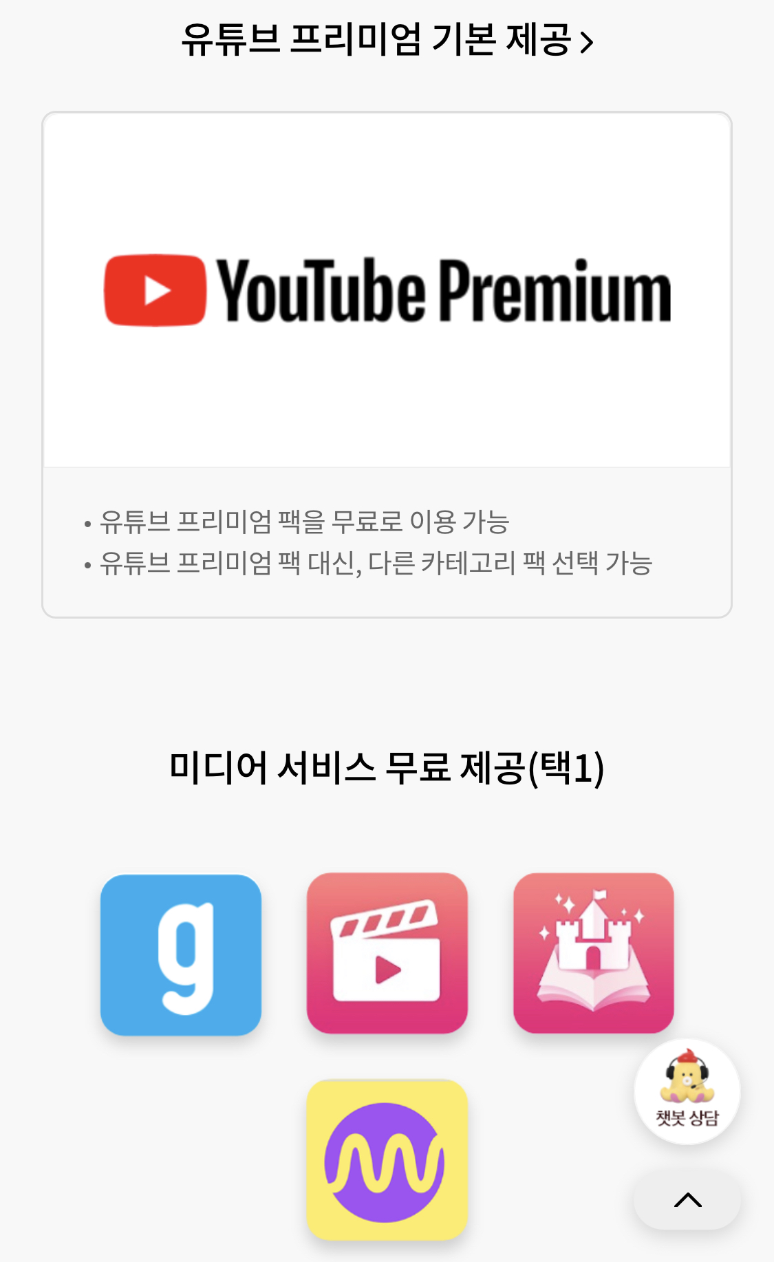 일단 유튜브 프리미엄은 기본적으로 고정선택인 옵션이고 이외에 추가혜택은 본인이 밀리의 서재가 싫다 하시는분은 유플러스 TV나 지니뮤직 선택 가능합니다 .