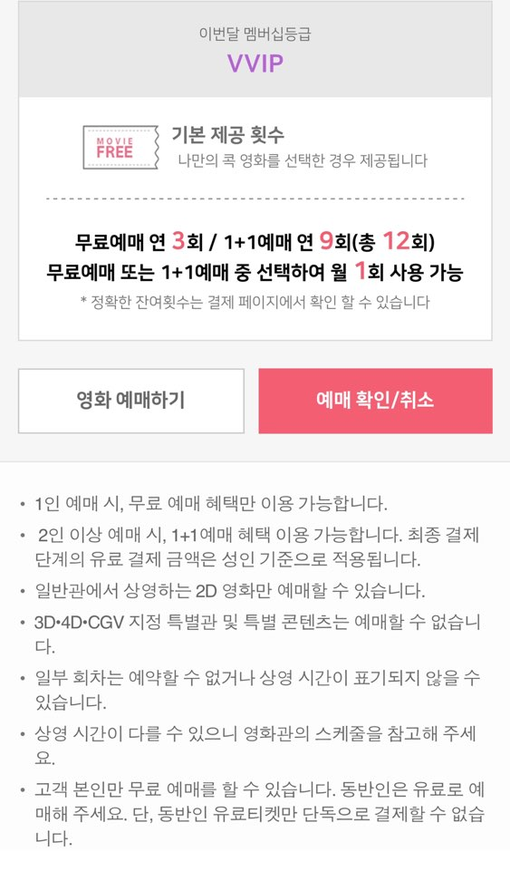 VVIP 등급 혜택 CGV영화표 3회 공짜
